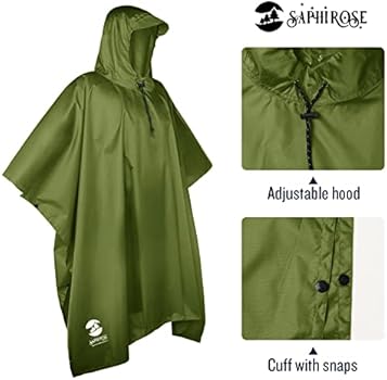 Saphirose Hooded Rain Poncho Waterproof Raincoat Jacket For Men Women Adults Army Green One Size Amazon Com Au Clothing Shoes Accessories